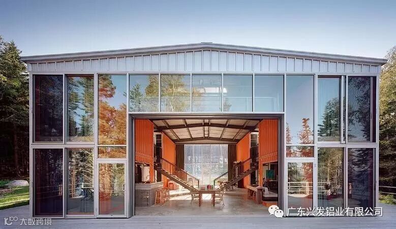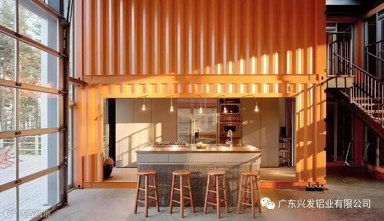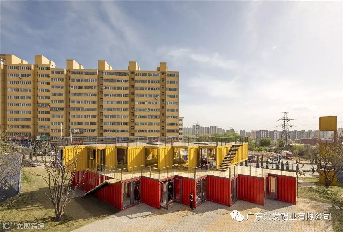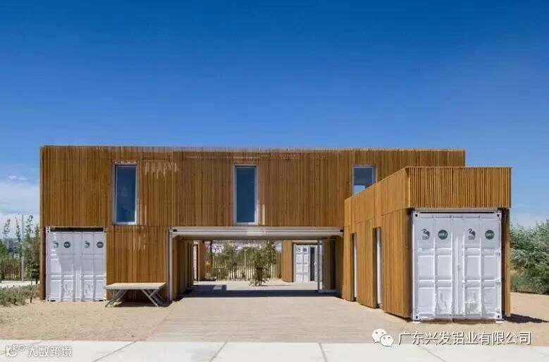 ▲图·利用废弃的集装箱用条状木头来覆盖金属结构形成的建筑结构