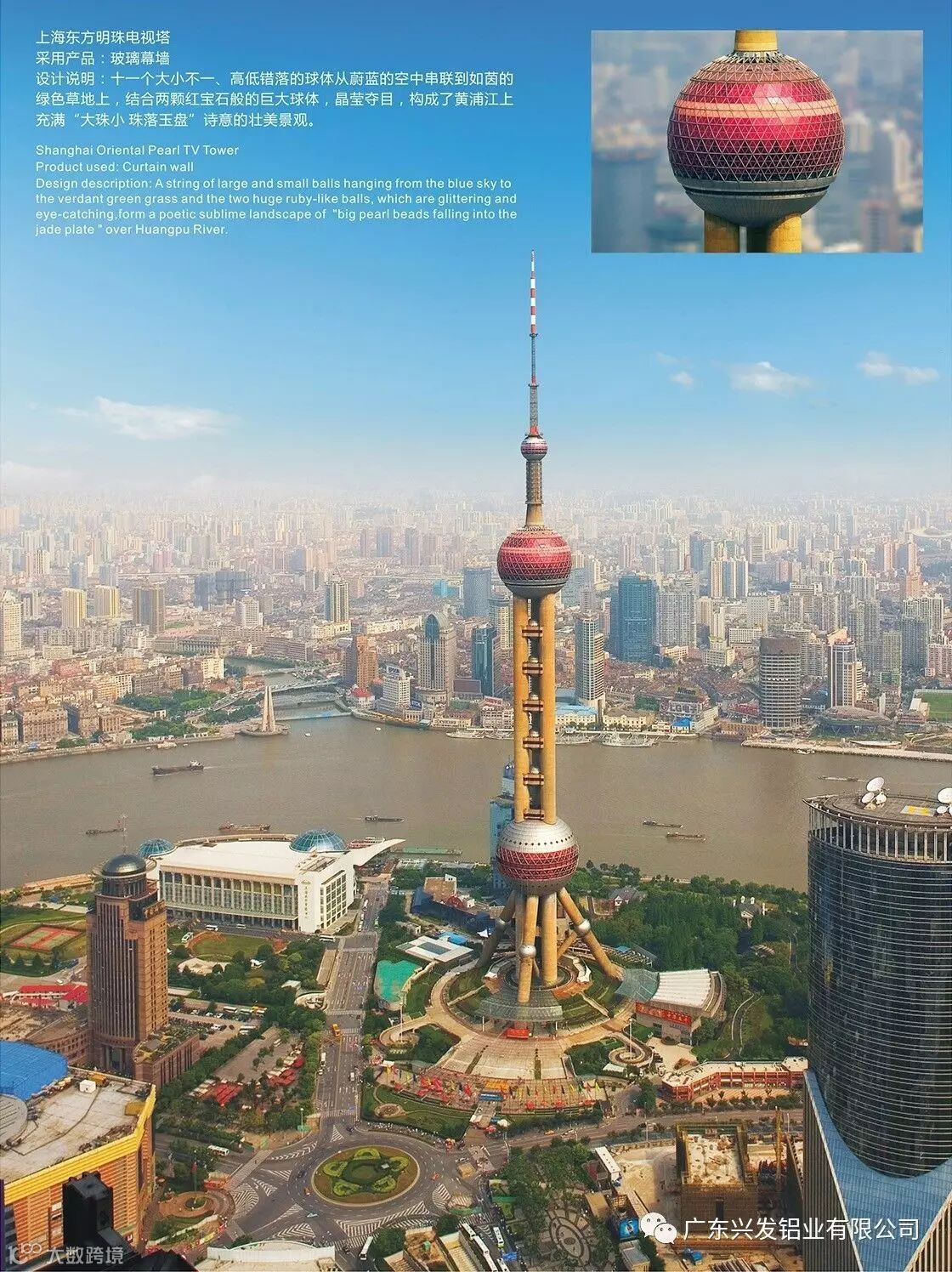 构筑整座电视塔的材料,从头到脚,哪怕是小到一颗螺丝,在当时都是采用外国产品,唯独镶嵌“东方明珠”的珠体和外部工程饰体急需要采用最优质的铝合金型材,选择的却是我国自己的产品。当你在浦江畔看到那颗明珠的流光溢彩时,那里有着兴发铝材的智慧与故事。