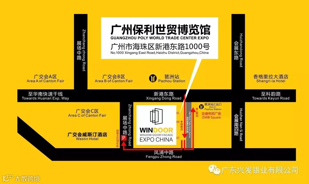 A.华南快速(新港东会展中心出口)→新港东路→保利展馆门窗幕墙展。