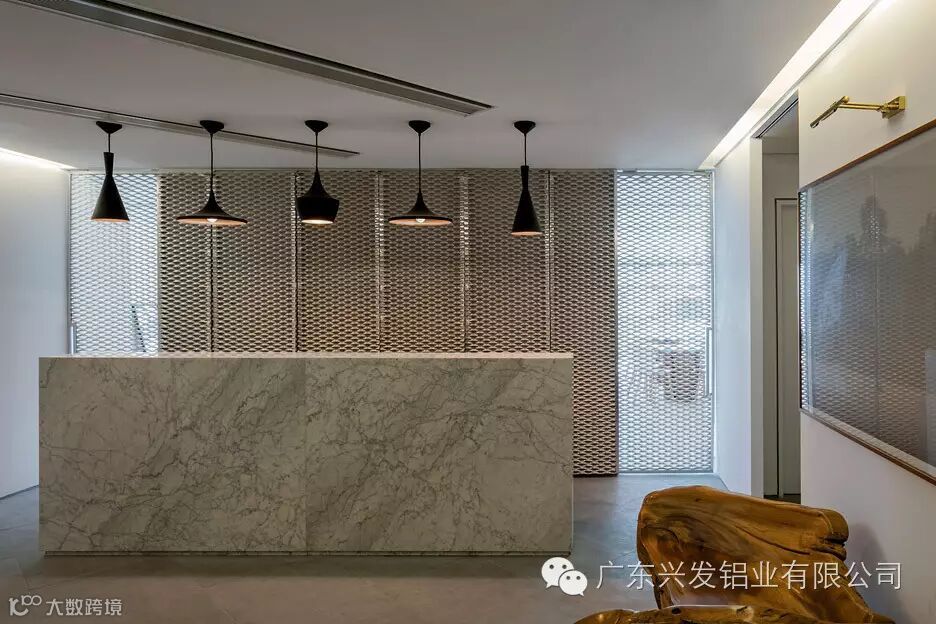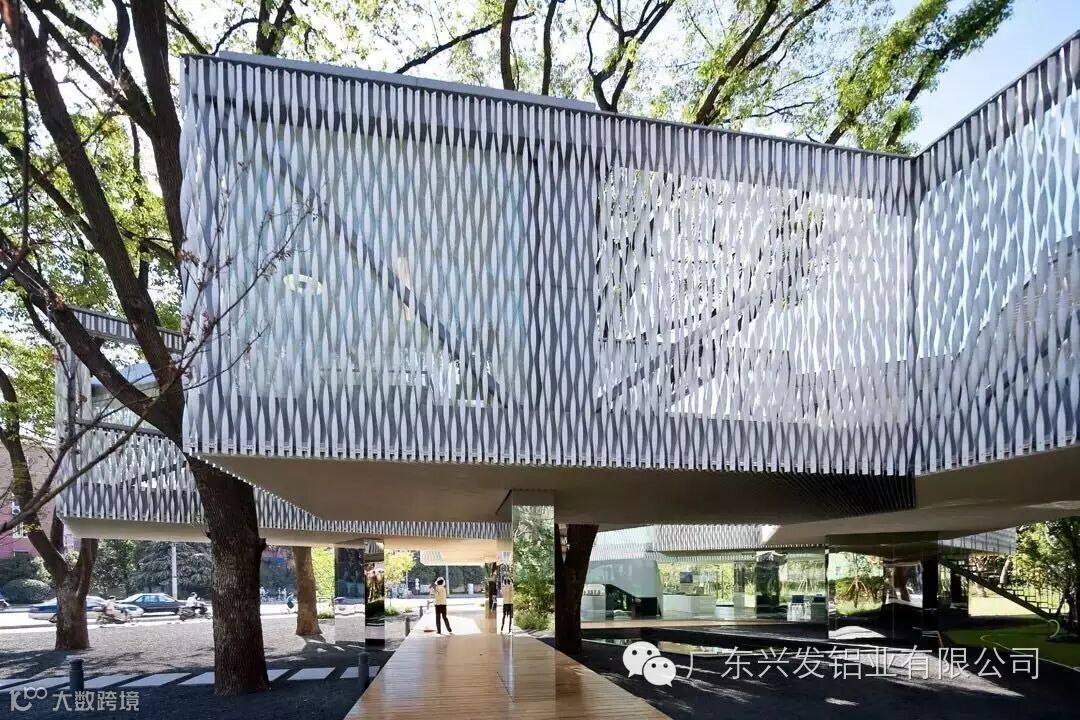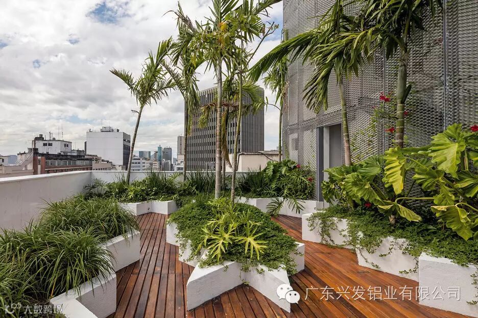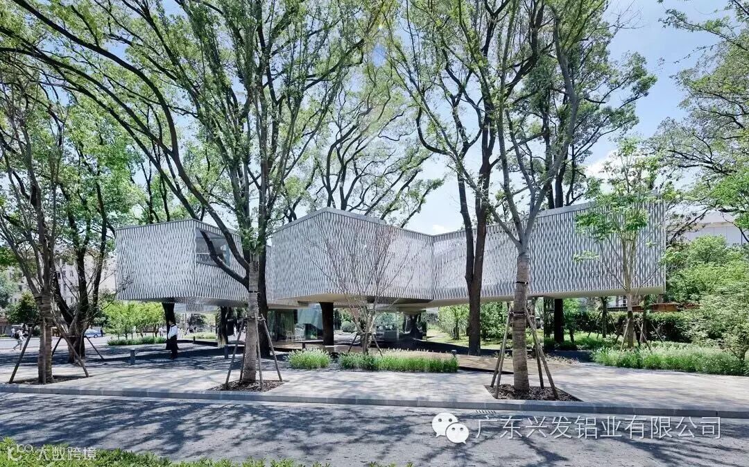 穿孔铝板营造出柔和形象,舒缓了高楼直接带来的压迫感,也为绿化自然和白领休闲提供了有趣的场所。人们可以沿着这片绿径在屋顶与地面间愉悦穿行;移步易景的效果创造了全新的城市建筑感官体验。