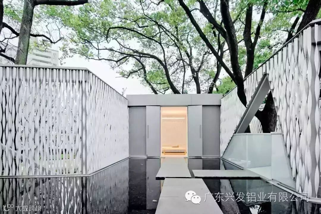 建筑与自然环境的合二为一,各个空间以桥为媒,以建筑学里的“尺度”关联性,使整个建筑显得格外亲切。建筑外表使用了扭拉的铝条,如同枝叶,任由阳光、雨露、空气和风景穿过。