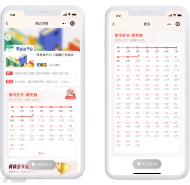 读者能够即时监控当前的打卡进度,并记录阅读打卡的时间轨迹。