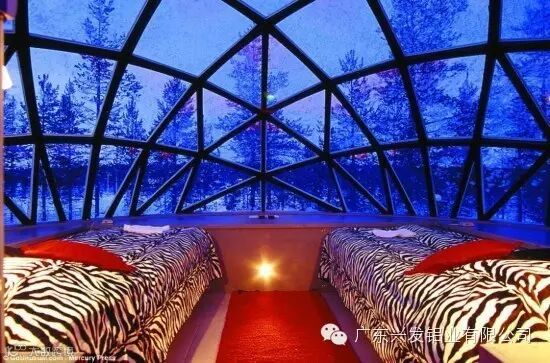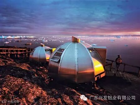 在格陵兰伊卢利萨特确实建有这样的北极酒店。小屋是铝制的框架,这种金属铝表面会形成一层肉眼看不见的氧化膜,使铝不再氧化,这种自我保护使铝具有极高的耐腐蚀性,同时铝合金在温度-45°至260°c之间,强度、性能不变,因此可以在极严寒地区甚至日晒强烈地区、耐昼夜温差大等恶劣多变的气候下使用仍历久弥新。