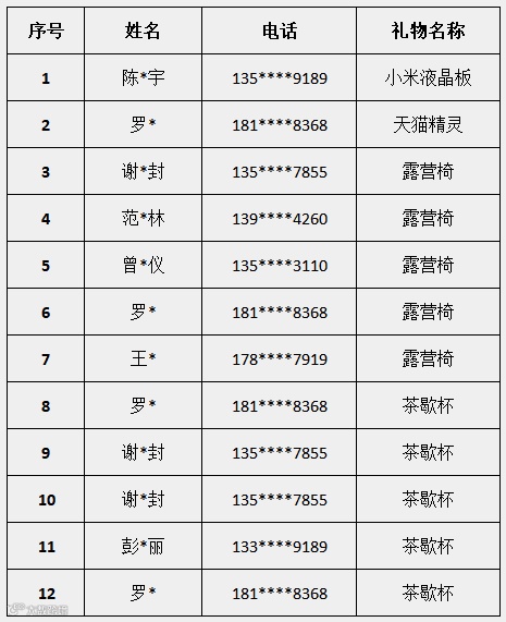 实物获奖名单