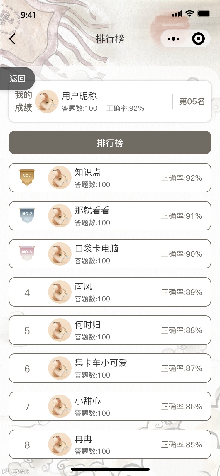 4.每回答正确一道题即可展开画卷中的书卷,答题榜实时公布答题排名