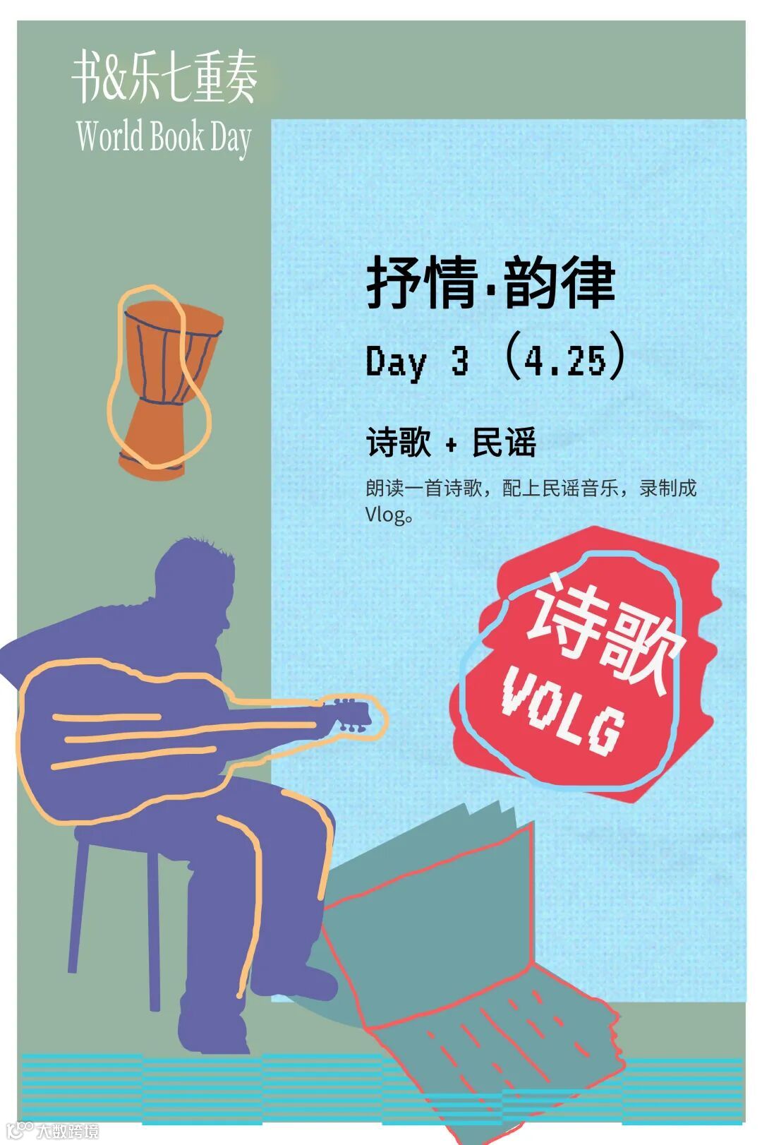 ③参与者须本人出镜朗诵,并根据每日主题选择匹配的书籍与背景音乐,或亲自演奏录制视频。