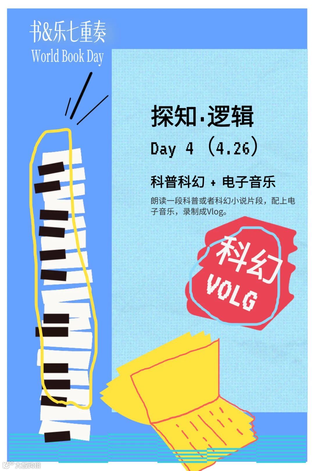 朗读一段科普或者科幻小说片段,配上电子音乐,录制成Vlog。