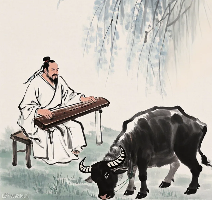 公明仪没辙了,突然灵机一动,用琴模仿蚊子 “嗡嗡” 声和离群小牛犊的哀鸣。嘿,老牛瞬间来了精神,停止吃草,抬头竖耳,摇着尾巴,小步来回走动,听得十分专注。
