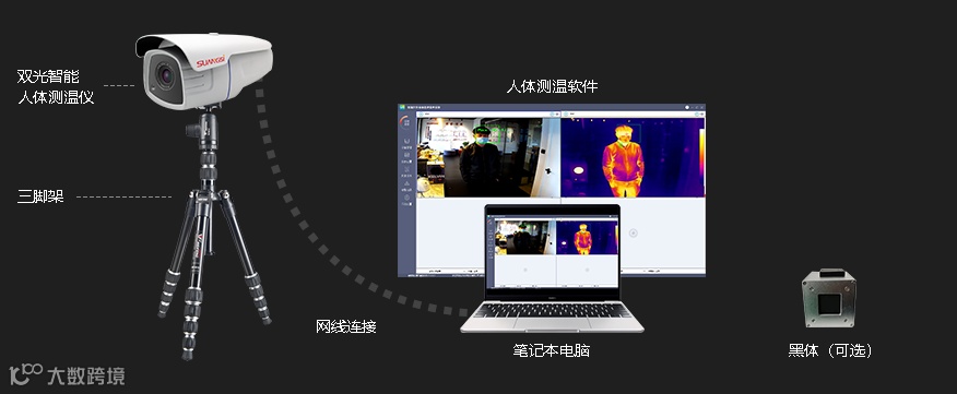 采用热成像测温双光筒机,同时配套黑体,以及测温软件,测温精度可达±0.3℃,可满足非接触式无感知热成像人体测温的应用需求求。广泛应用于公共场所等人流量较大的场所,识别无上限,支持多人同时测温,精准监控,高危实时预警,远距离、大面积人群精准监测,可同时标识10人及以上。实施自动抓取发热人员,自动图像抓拍。