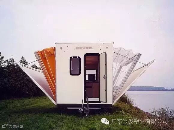 在移动的路上,雨篷拖车仅长4.5米、宽2米,但当到达露营地后,将两边的雨篷式车厢展开,就能瞬间得到将近三倍的宽阔空间。