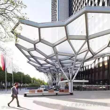 建筑可用的材质多种多样,雨篷也不像以往,现在不仅仅使用钢材,还可以有很多不同材料,加上设计师们的创意理念,以致现在的建筑物,造型独特。