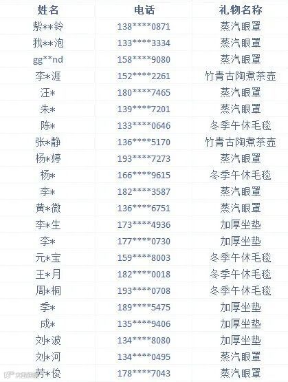 (注:本次活动共计发放红包150个,以下为实物礼品获奖者名单。)