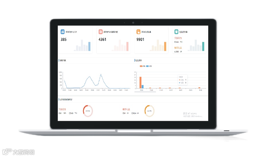 阅读推广数据统计系统包含活动总举办量统计、活动总参与人数统计、单场活动数据明细统计(活动报名数、签到数、答题数、礼品发放数、投票数)