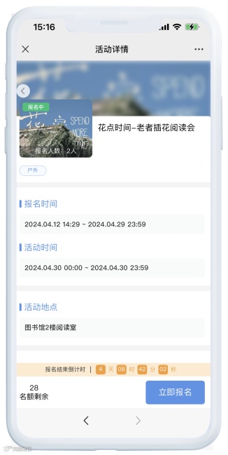 解决馆内优质活动资源的均衡分配问题,刺激读者与图书馆高频互动,避免“冷门活动无人参与”,“热门活动无法参与”的现象。图书馆可根据本馆活动的实际规划,对冷门活动实行积分奖励,热门活动报名实行积分报名限制。以此达到资源的均衡分配,并有效刺激读者“赚积分”行为,加强读者日常互动。