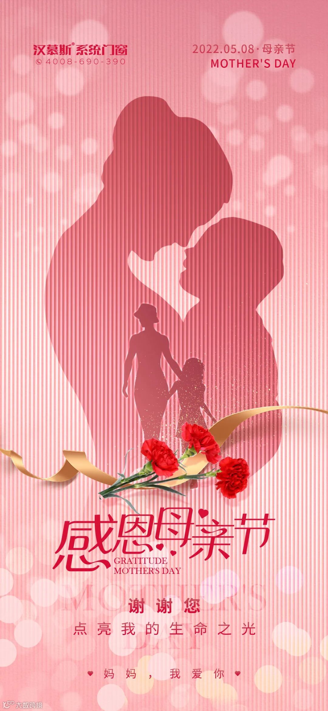 汉慕斯系统门窗今天是5月8日,星期日,也是母亲节,母亲节只是五月中的一天,而母亲的爱却是岁岁年年。