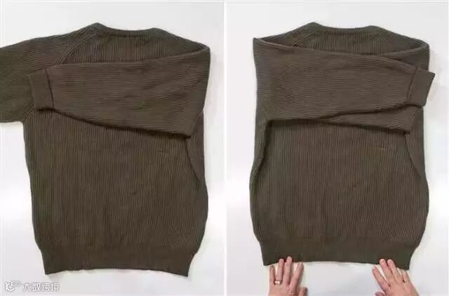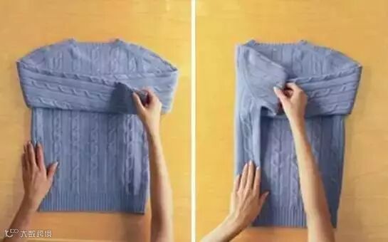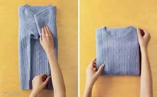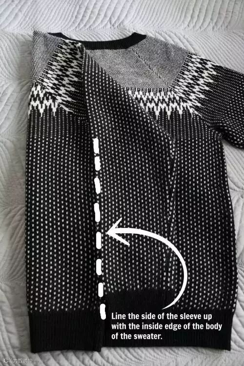 1.毛衣沿着中间对折,袖子和衣角分别对齐。