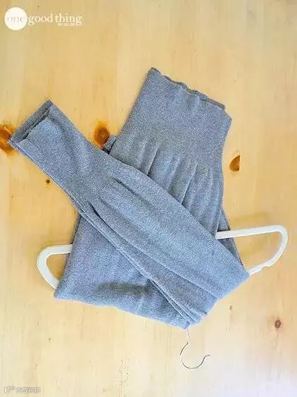 4.袖子搭在上面,交叉挂在衣架上。