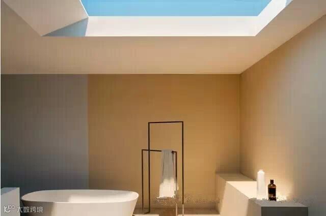 所有这些元件都装在高科技窗户内,窗户又要不可避免地用于多种多样房屋形式,无论是老式装修还是新建的。这个浴室没有阳光,但是高科技窗户能让你沐浴在阳光中。
