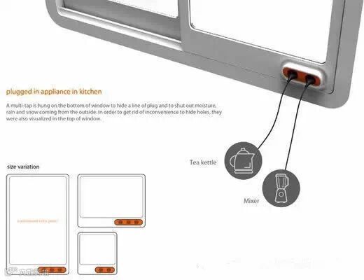 由三位韩国设计师Jun-se Kim, Yu-jin Cho 和 Yu-jin Lee设计了这款太阳能窗户,窗户上装有透明的太阳能电池板,窗户的测下角和底端设有插座设计,通过窗户将太阳能进行吸收存储,并转化为电能,供给常用的电器电能,将窗户的使用率提高到最大。