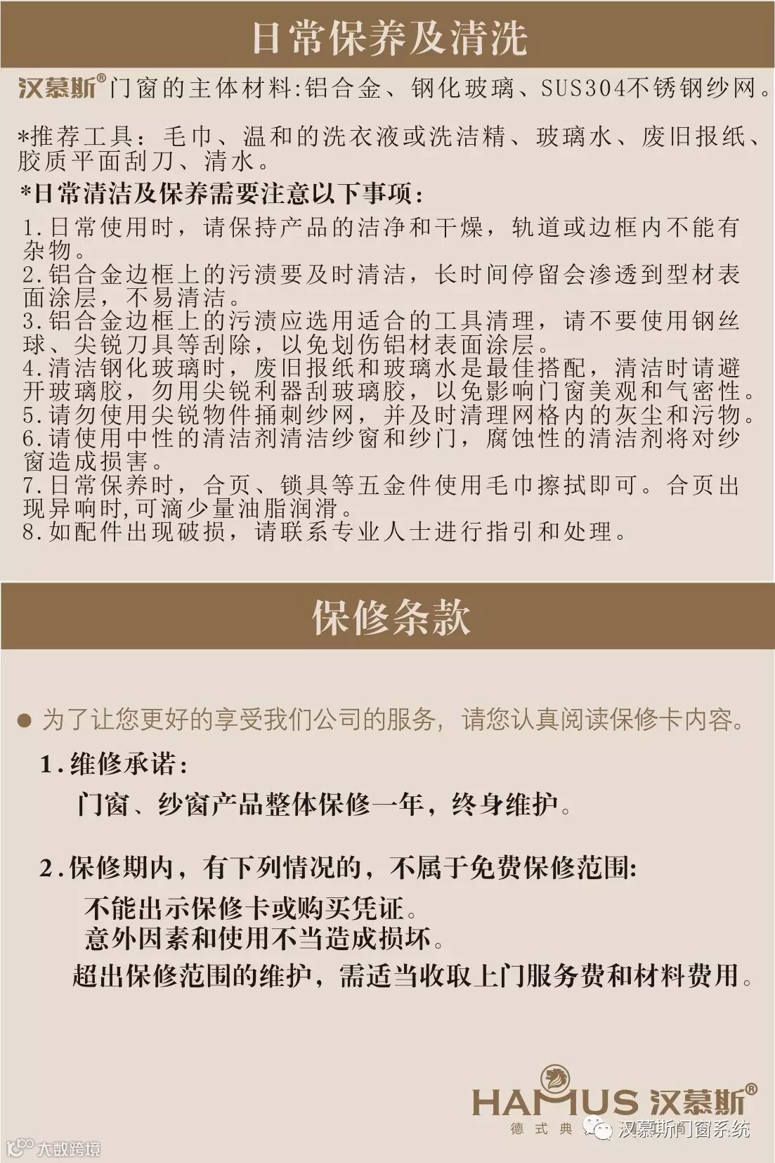 汉慕斯门窗、纱窗产品日常保养及清洗