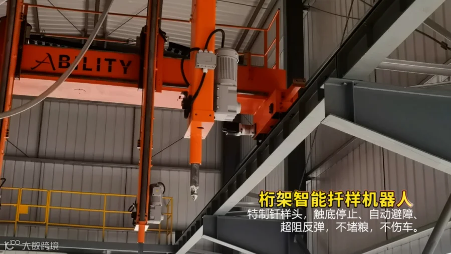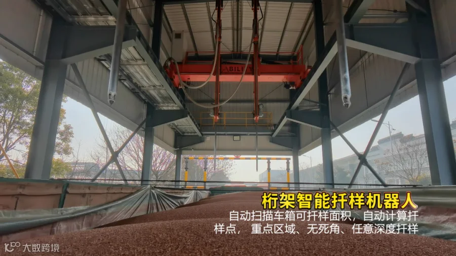 扦样采用国内首创“桁架智能扦样机器人”,智能双臂效率高于传统扦样机的6扦,扦样用时不到2分钟。