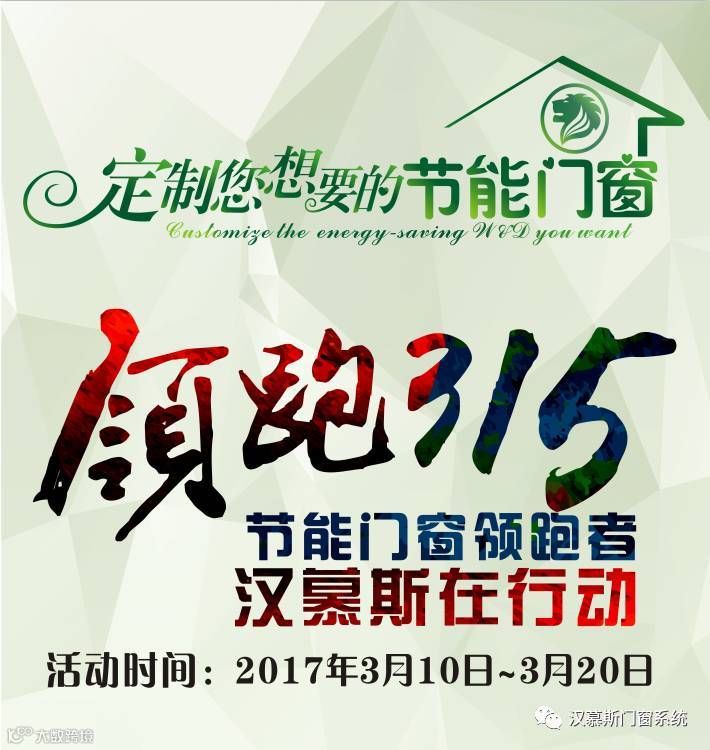 汉慕斯门窗领跑315大型促销活动已于3月10日在全国范围内拉开帷幕,准备购买门窗纱窗的你,即日可前往当地距离最近的汉慕斯门窗专卖店咨询购买。