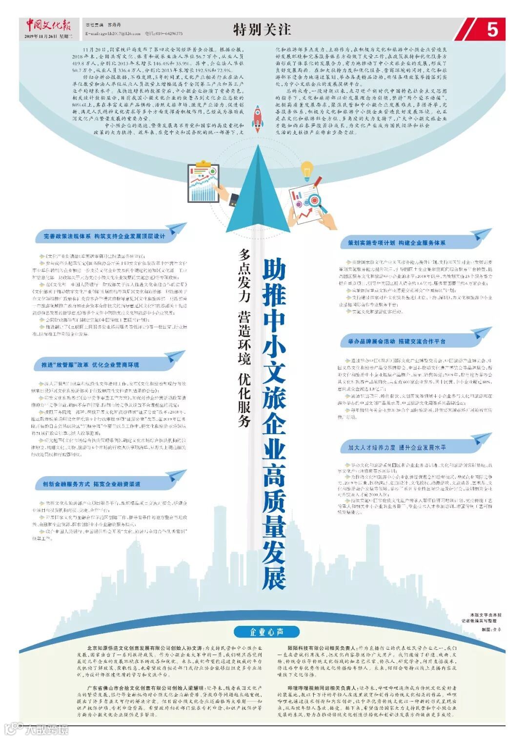 ● 在《文化部 中国人民银行 财政部关于深入推进文化金融合作的意见》《文化部关于推动数字文化产业创新发展的指导意见》《文化和旅游部 财政部关于在文化领域推广政府和社会资本合作模式的指导意见》《文化和旅游部 财政部关于在旅游领域推广政府和社会资本合作模式的指导意见》《文化和旅游部关于促进旅游演艺发展的指导意见》等多个文件中明确支持文化和旅游中小企业发展;