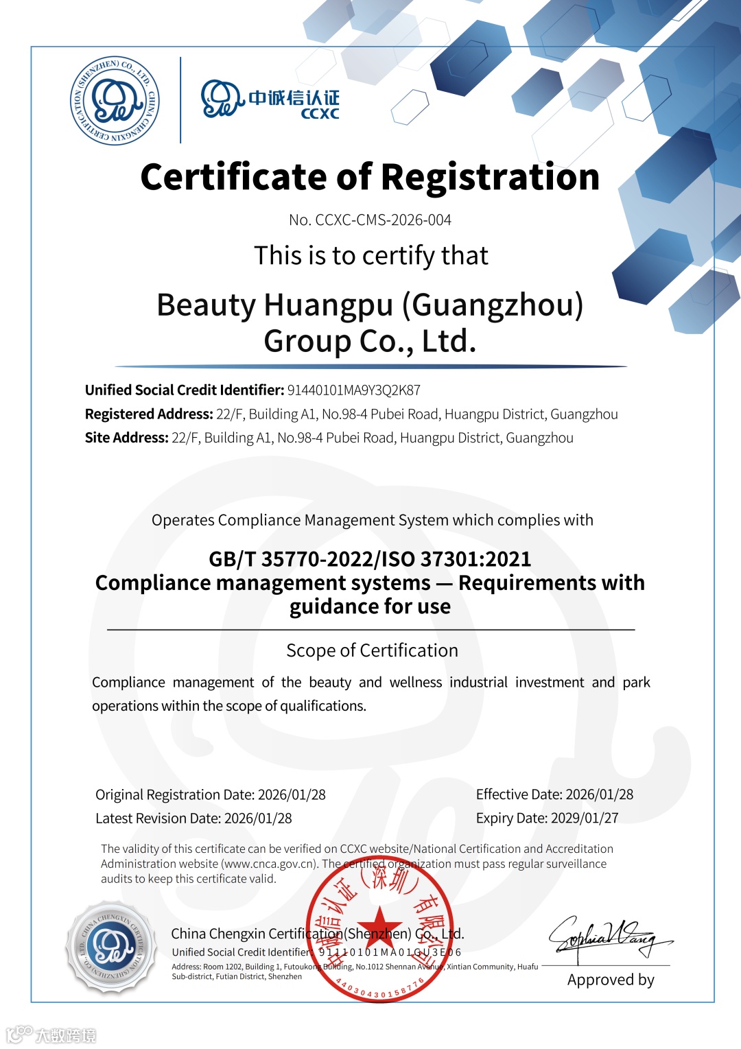 1月30日,南方美谷(广州)集团有限公司(以下简称“南方美谷”)顺利通过国家GB/T 35770-2022和国际ISO 37301:2021合规管理体系“双标”贯标认证,成为广州开发区投资集团(以下简称“集团”)旗下首家获合规“双标”认证的下属企业!