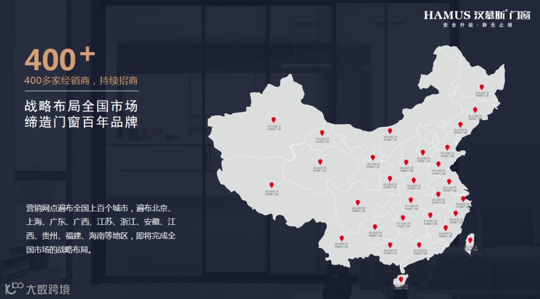 汉慕斯门窗秉承德国精品工艺技术和高端的系统门窗设计理念,集产品研发,生产、销售三位一体化的门窗制造企业,自2014年公司创立以来,在全国拥有400多家经销商门店,120家品牌连锁专卖店。