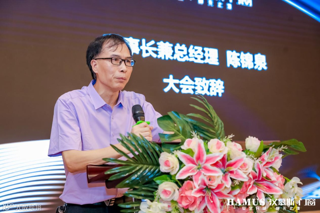 会议伊始,汉慕斯董事长兼总经理陈锦泉首先感谢了全体经销商对汉慕斯多年来的支持,并指出目前门窗行业市场形势,对于门窗企业而言,是挑战更是机遇。