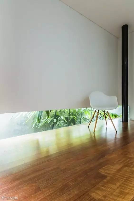 白墙开出一条缝,窗外之景“漏”进来,打破原本整墙的死板。