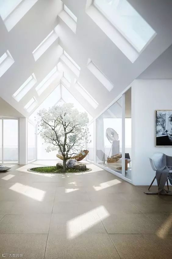 天窗的使用常常会让人产生与上天对话的感觉,换一个角度看室外。