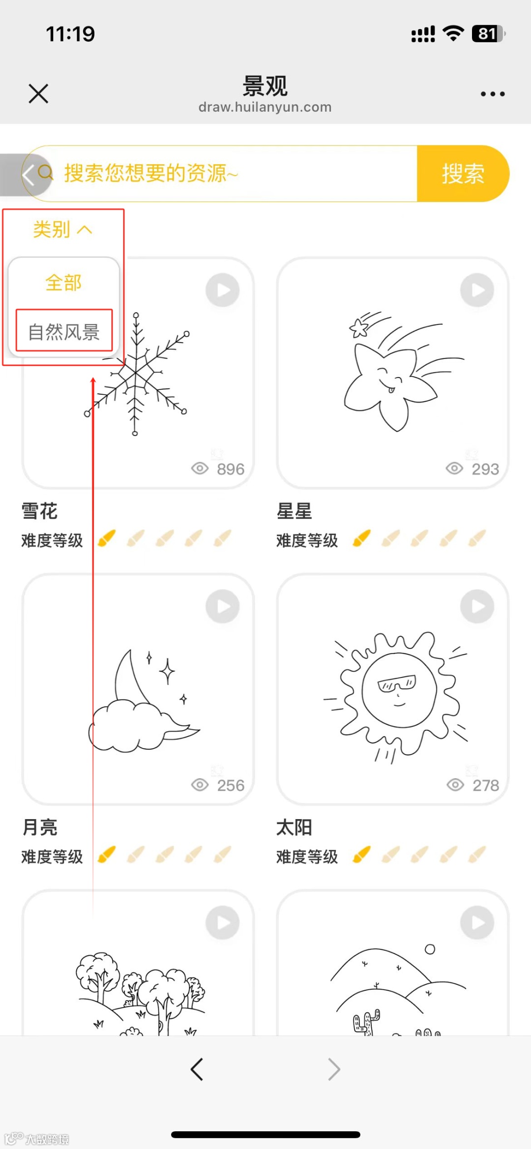 3.2点击进入“景观”类别;