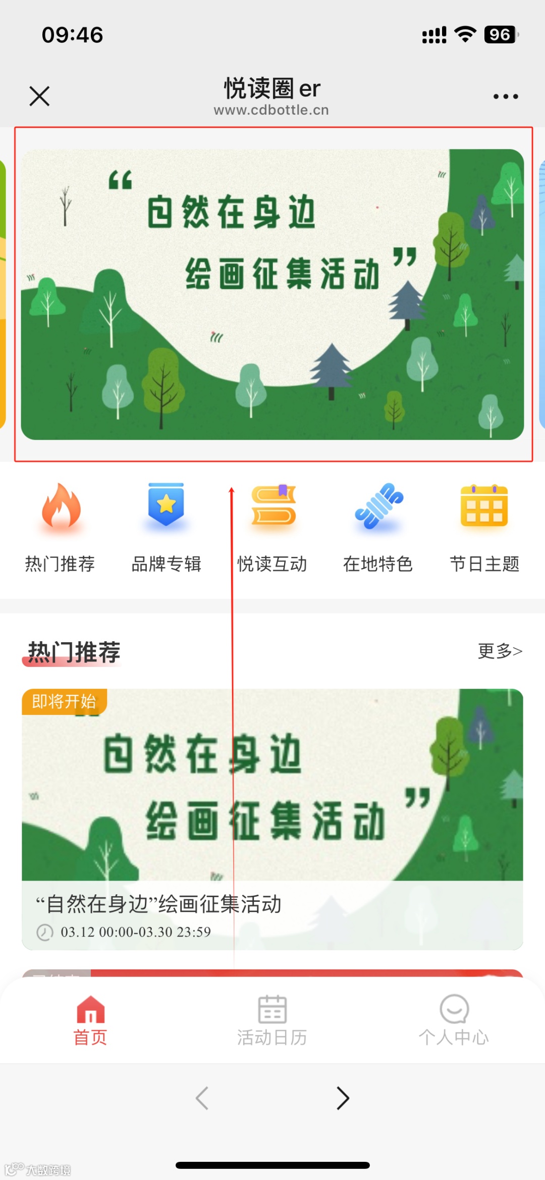 2.2点击:“自然在身边”绘画征集活动”进入活动界面;