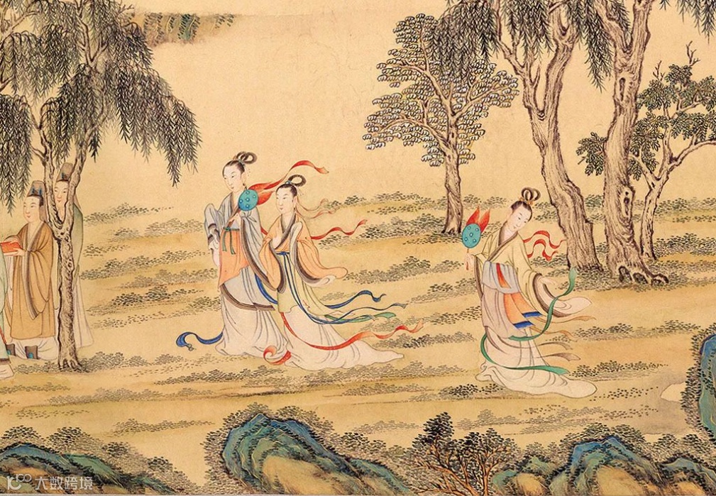 《洛神赋图》中便记载了南北朝女性流行的服饰穿搭,袿衣的绣罗华丽跃然纸上。