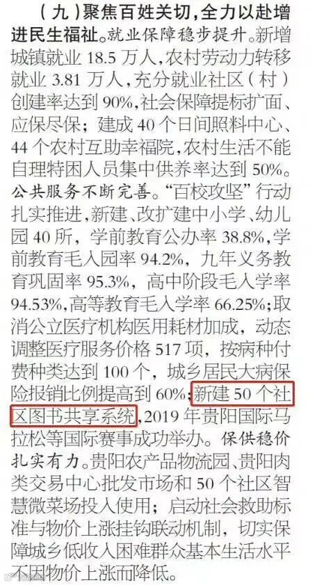 阅享易栈社区图书共享系统作为民生项目工程再次出现在贵阳市陈晏市长2020年工作总结报告中。