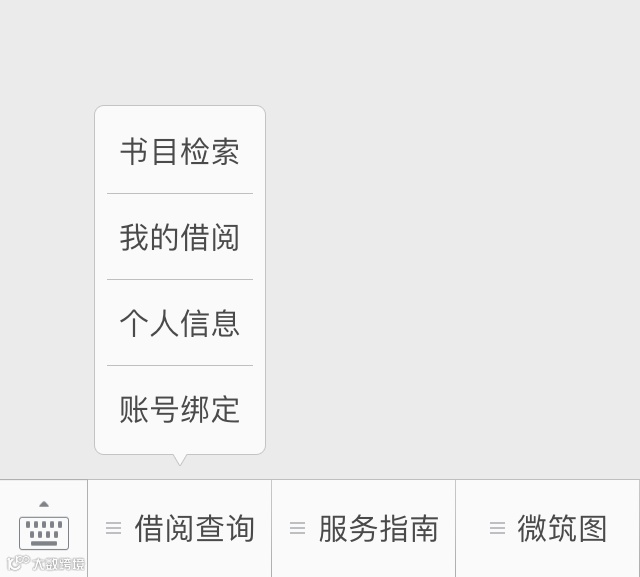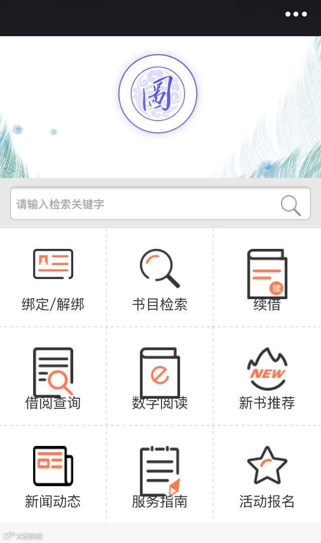 个人图书馆:包含书目检索、图书续借、账号绑定、个人资料管理等功能。