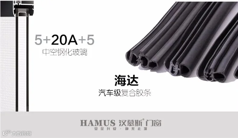 在铝合金门窗上复合胶条一样可以起到隔热降温的作用,汉慕斯门窗专配
