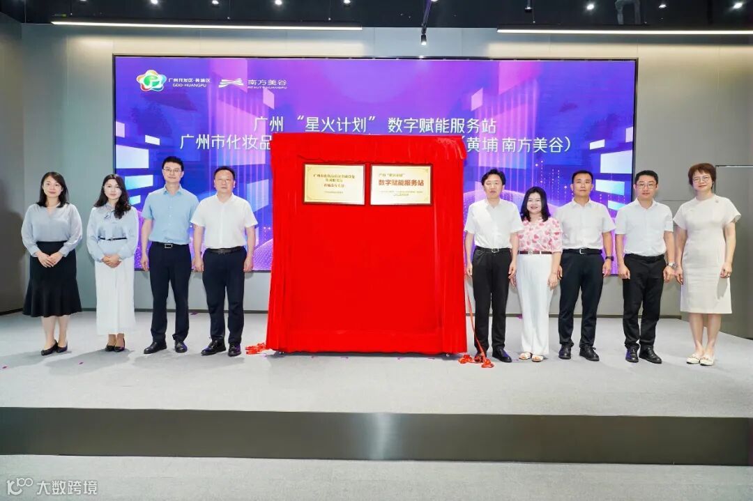 ▲广州“星火计划”数字赋能服务站、“广州市化妆品质量基础设施集成服务站(黄埔南方美谷)”揭牌仪式
