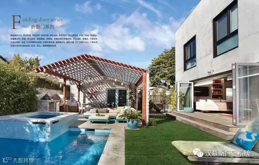 汉慕斯折叠门系列,大折叠式的设计令开启空间达到最大的限度,使室内外畅通无阻,视野广阔,让家人可以尽情欣赏外面的大好风景。一扇大折叠门,带给你超大视野空间,这就是折叠门的魅力之一。