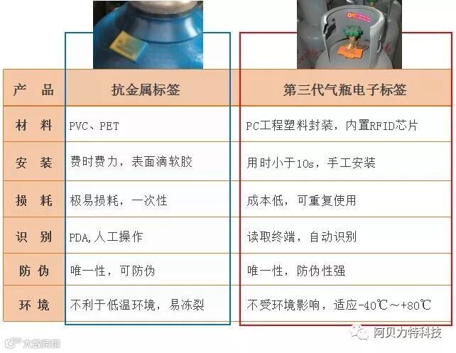 如果把“条码、二维码”、“智能角阀、金属标签”分别作为气瓶的“第一代身份证”与“第二代身份证”,那么阿贝力特“挂在气瓶上的电子标签”——“RFID电子标签”,可作为气瓶的“第三代身份证”。