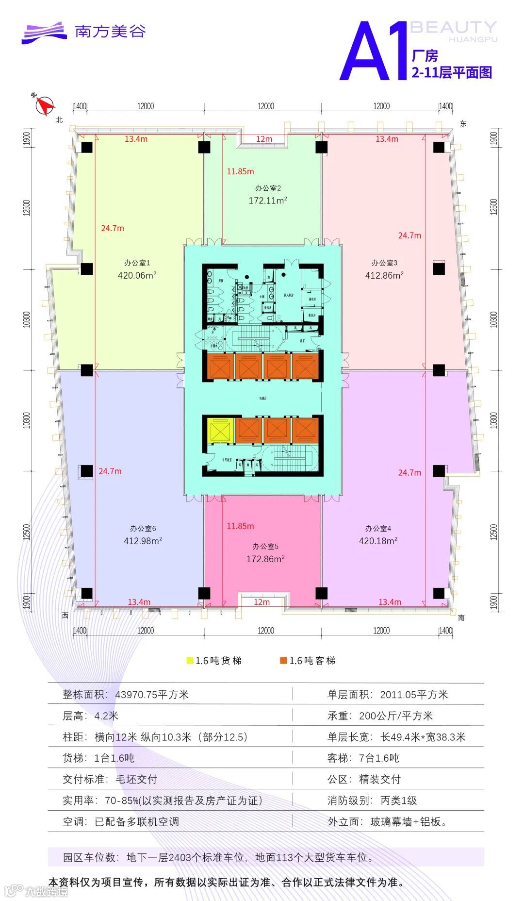 层高:首层6.6米,标准层4.2米