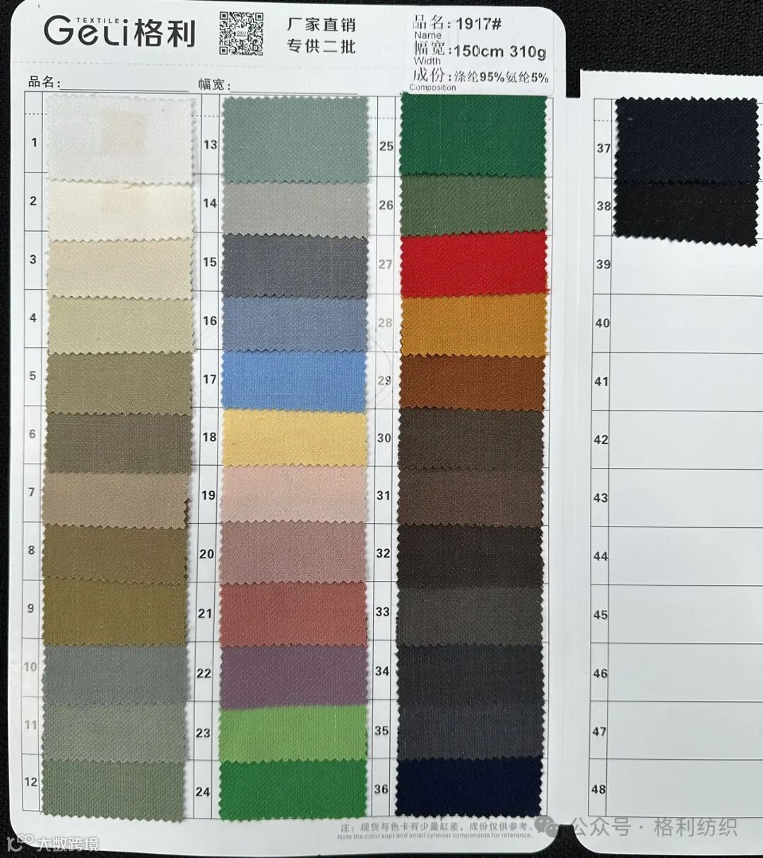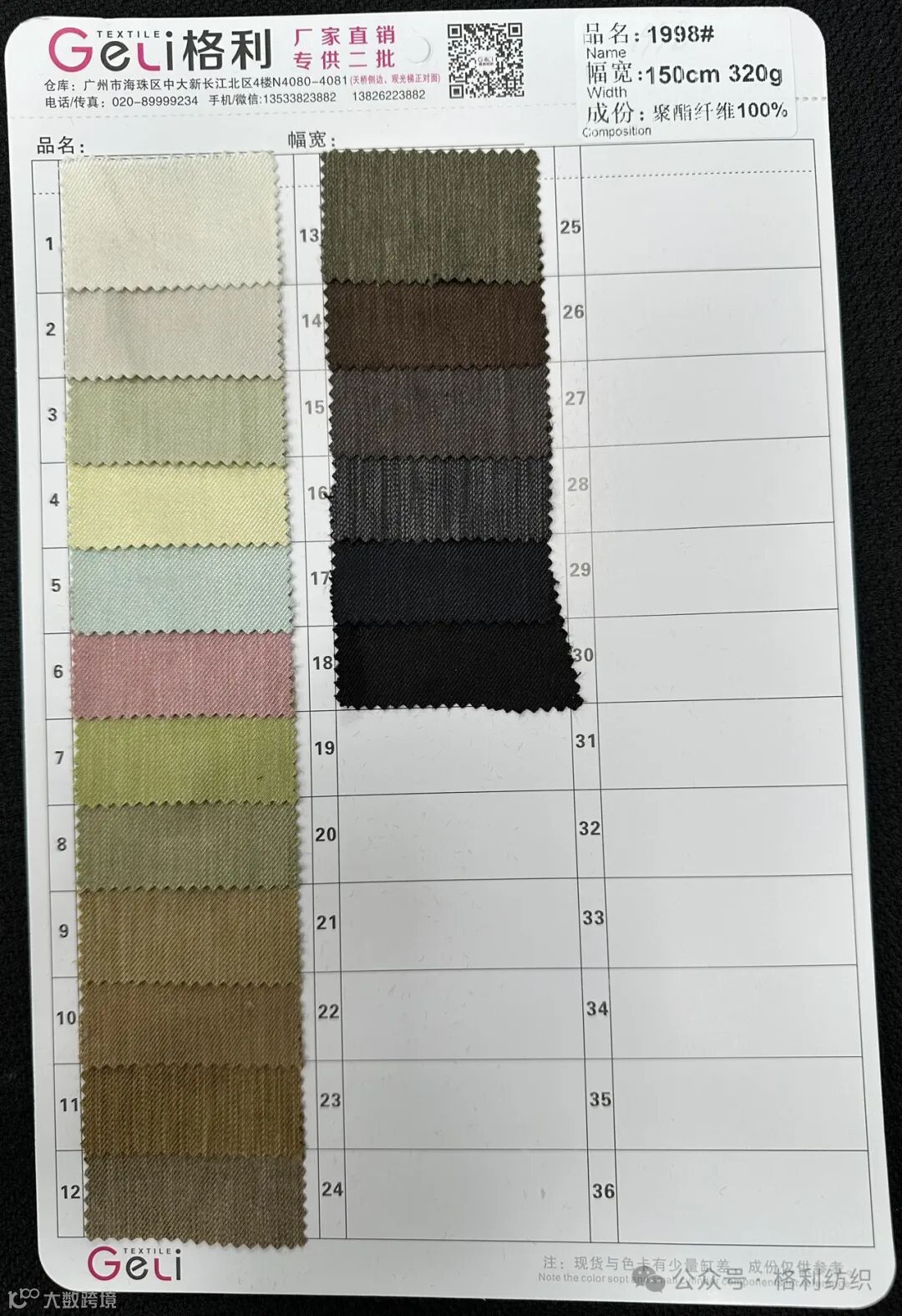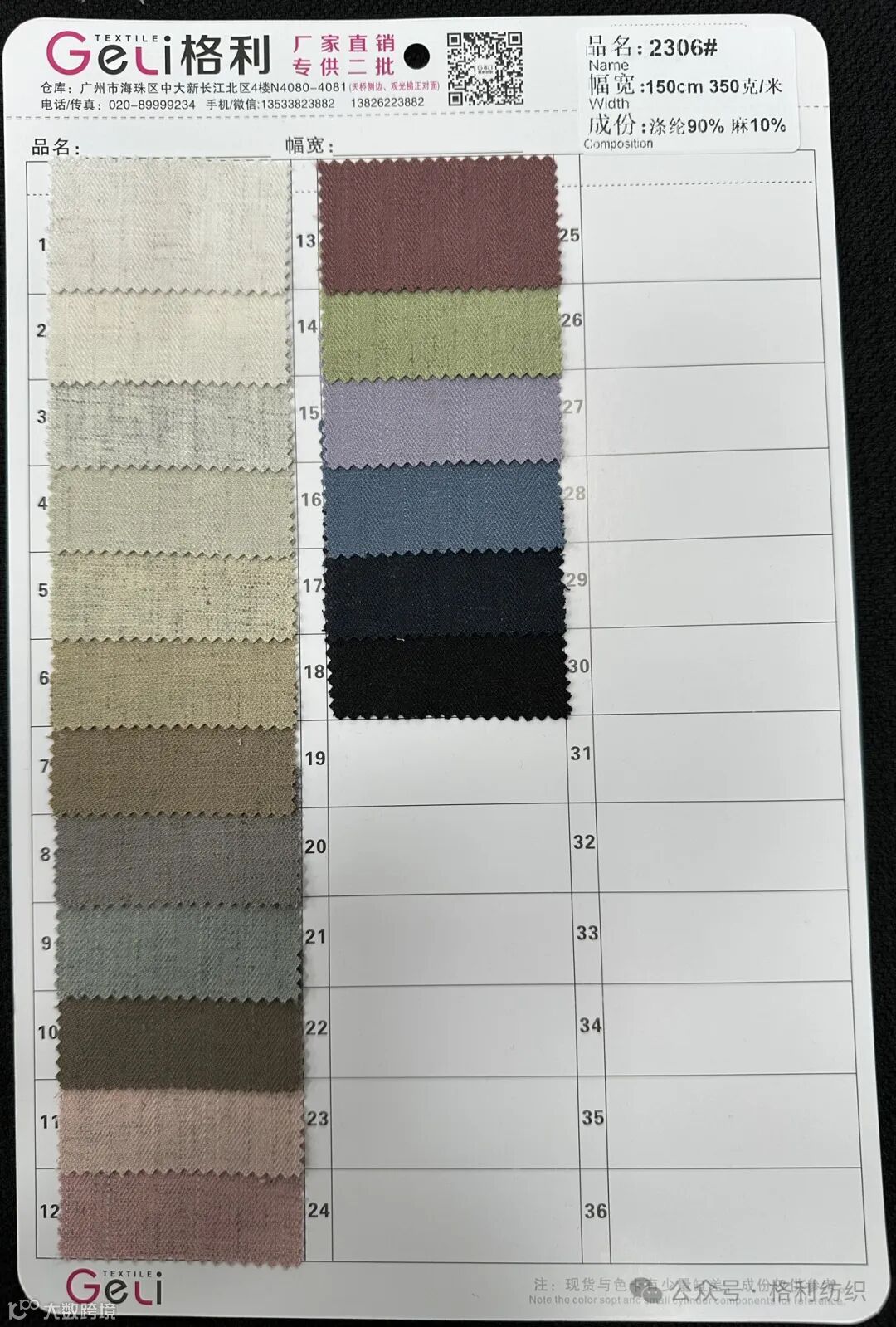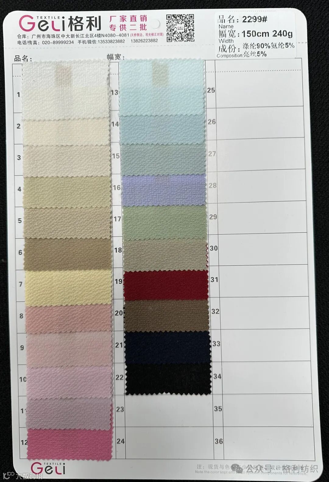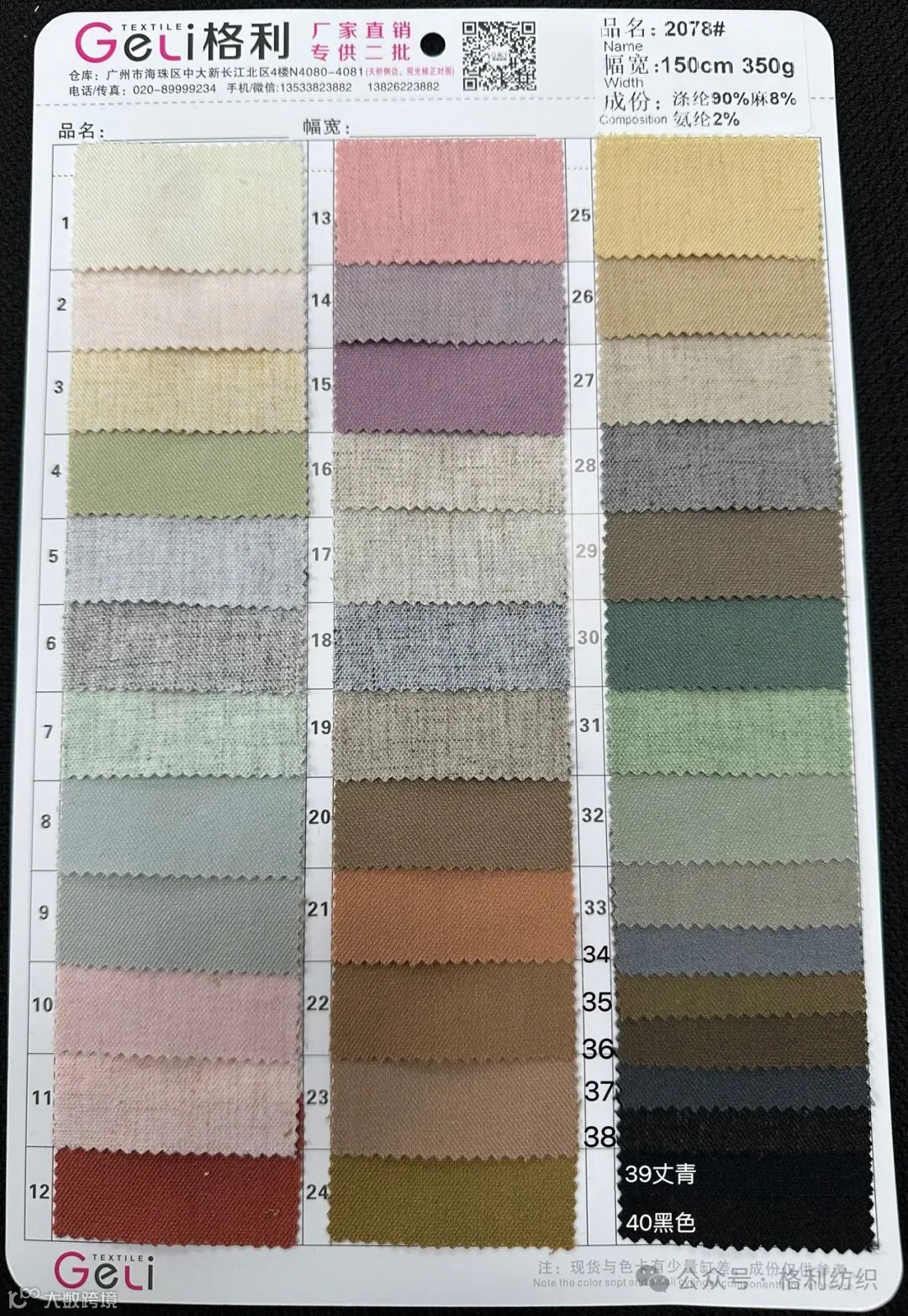 感谢您关注广州新格利®纺织 ,我公司专业从事面料生产开发,TR色织格条,素色小香风,TR双色乐丽丝系列。欢迎广大客户前来咨询采购!地址:广州市海珠区中大新长江北区三楼N3183。☎️电话020 89999234 手机:13826223882
