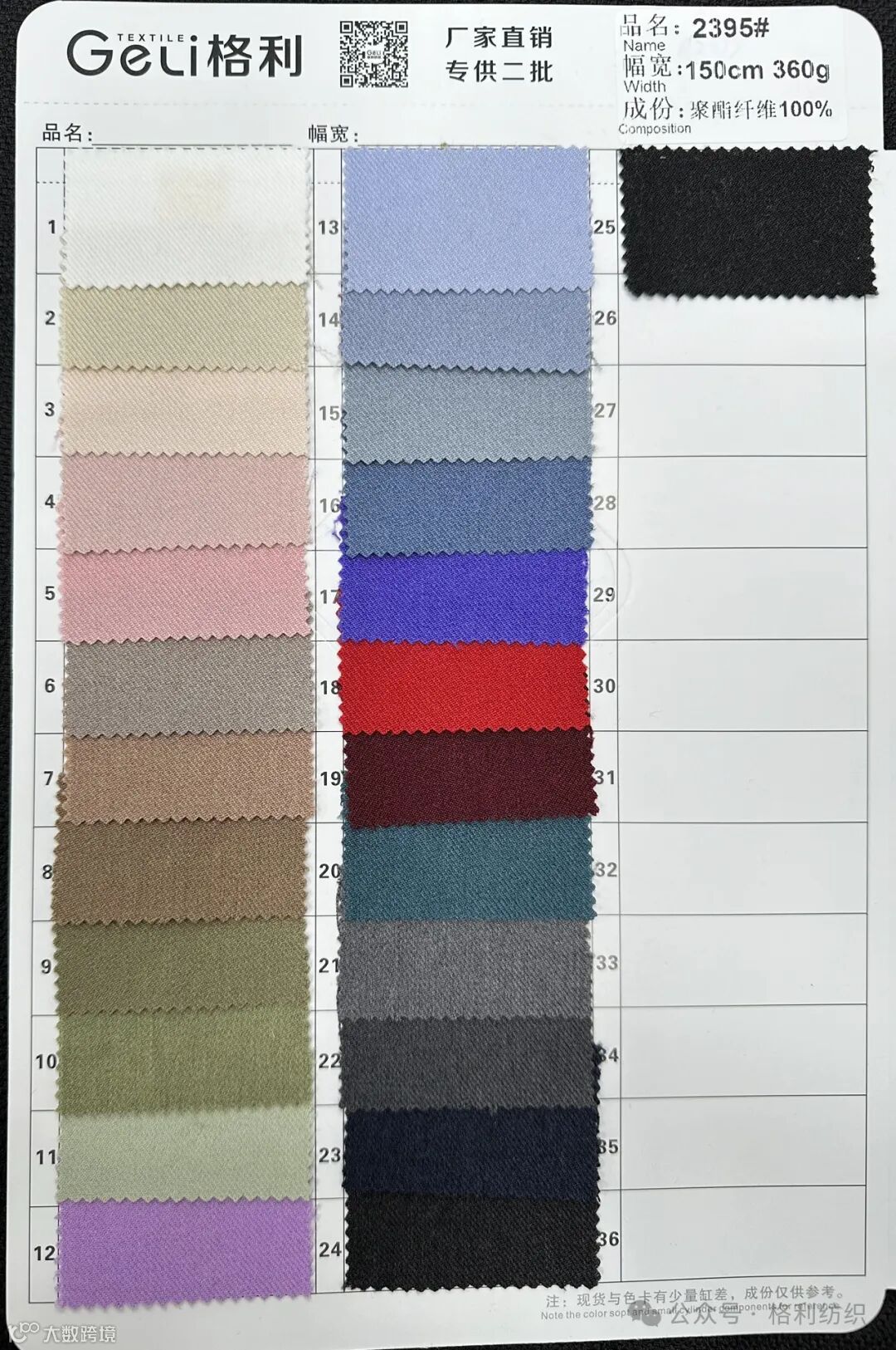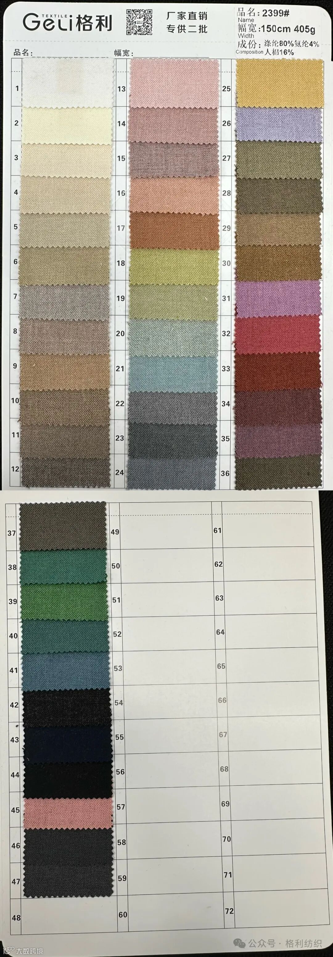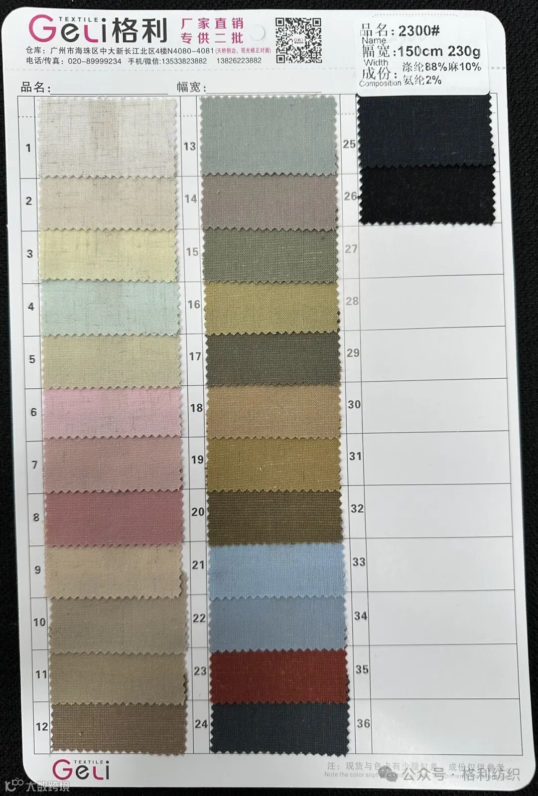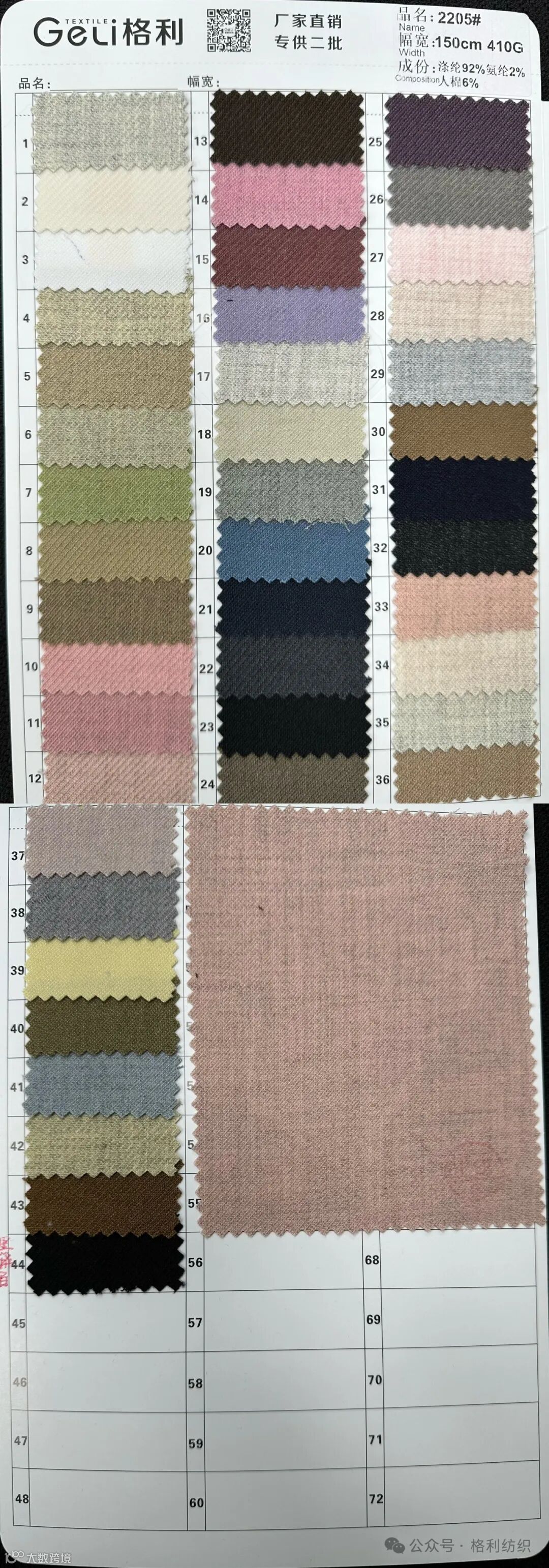 感谢您关注广州新格利®纺织 ,我公司专业从事面料生产开发,TR色织格条,素色小香风,TR双色乐丽丝系列。欢迎广大客户前来咨询采购!地址:广州市海珠区中大新长江北区三楼N3183。☎️电话020 89999234 手机:13826223882