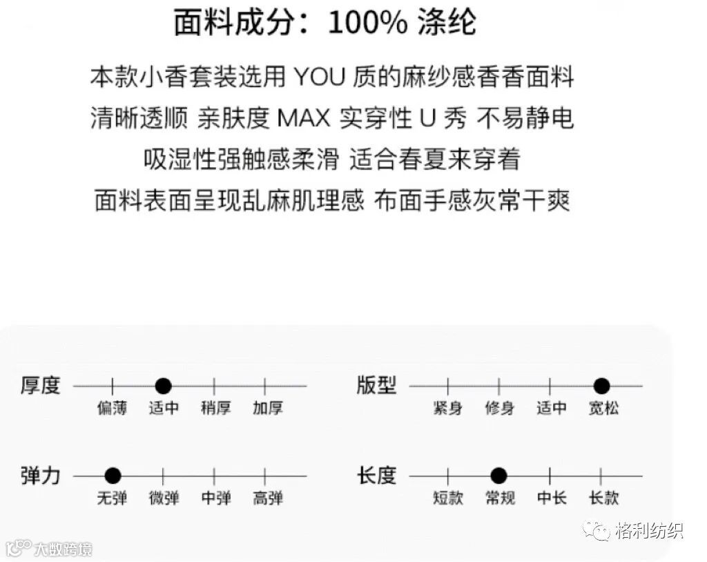 感谢您关注广州新格利®纺织 ,我公司专业从事面料生产开发,TR色织格条,素色小香风,TR双色乐丽丝系列。欢迎广大客户前来咨询采购!地址:广州市海珠区中大新长江北区三楼N3183。☎️电话020 89999234 手机:13826223882