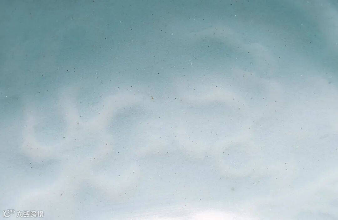 盘内壁饰八只形态各异的仙鹤,俯仰顾盼,飞舞奔放,穿插有序。仙鹤腾踔太空,翔于五色祥云之中,寄寓“云鹤千年”之意。《清实录》曾载 , 雍正元年,雍正帝诣毕景陵后,曾仰见「祥云五色、自西北起、覆于景陵缭绕不散」,以为瑞应,其后多将此纹样运用于御瓷之上。
