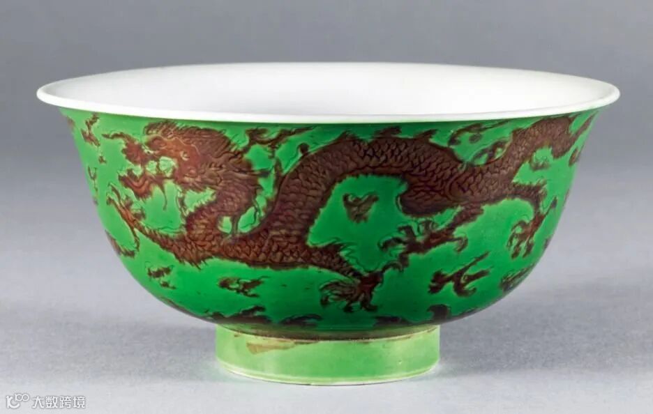 附图:北京故宫博物院藏 清康熙 绿地紫彩云龙纹碗