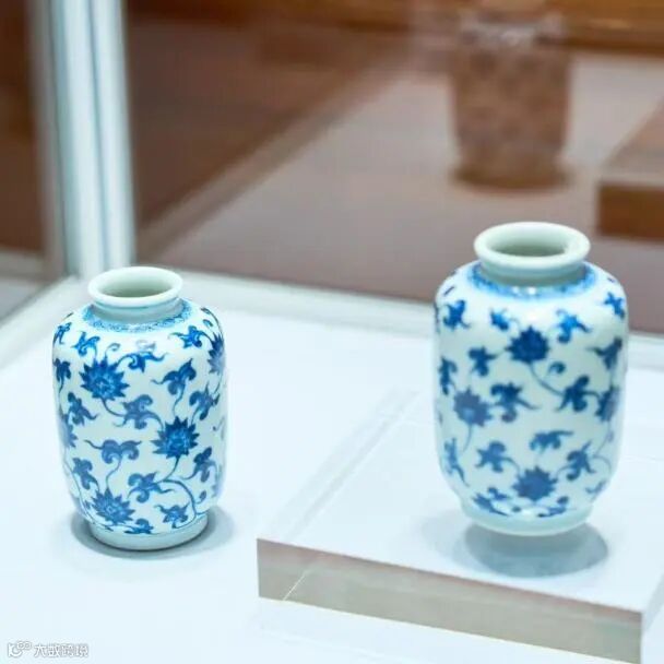 赏瓶最早出现于雍正时期,清宫档案原名为“玉堂春瓶”,是清宫经典的陈设器皿,光绪朝之前,赏瓶以青花绘製缠枝花卉品种最为多见。