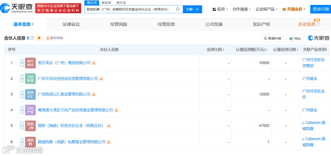 近日,路威凯腾(广州)消费股权投资基金合伙企业(有限合伙)成立,基金管理人和执行事务合伙人为路威凯腾(成都)私募基金管理有限公司,出资额约9.4亿人民币,注册在广州开发区、黄埔区,经营范围为以私募基金从事股权投资、投资管理、资产管理等活动。该基金为母基金,南方美谷(广州)集团有限公司(以下简称“南方美谷”)认缴出资1亿元人民币,助力广州培育建设国际消费中心城市。