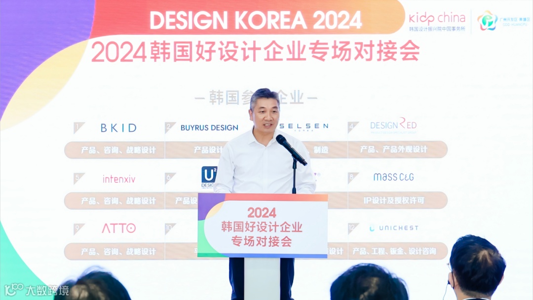 10月25日,韩国好设计企业专场对接会在黄埔区顺利举办,活动由广州市黄埔区文化广电旅游局、韩国设计振兴院(KIDP)北京事务所(以下简称“韩国设计振兴院”)主办,南方美谷(广州)集团有限公司(以下简称“南方美谷”)协办,共同掀起了一场创意风暴,迎来了一场设计与产业深度融合的盛会。区文化广电旅游局党组书记、局长关瑞华、区文化广电旅游局党组成员、副局长陈淼、韩国设计振兴院北京事务所所长崔基烈、韩国设计振兴院全球对外战略室室长宋正萬、南方美谷副总经理钟洁瑶等领导出席了此次活动。